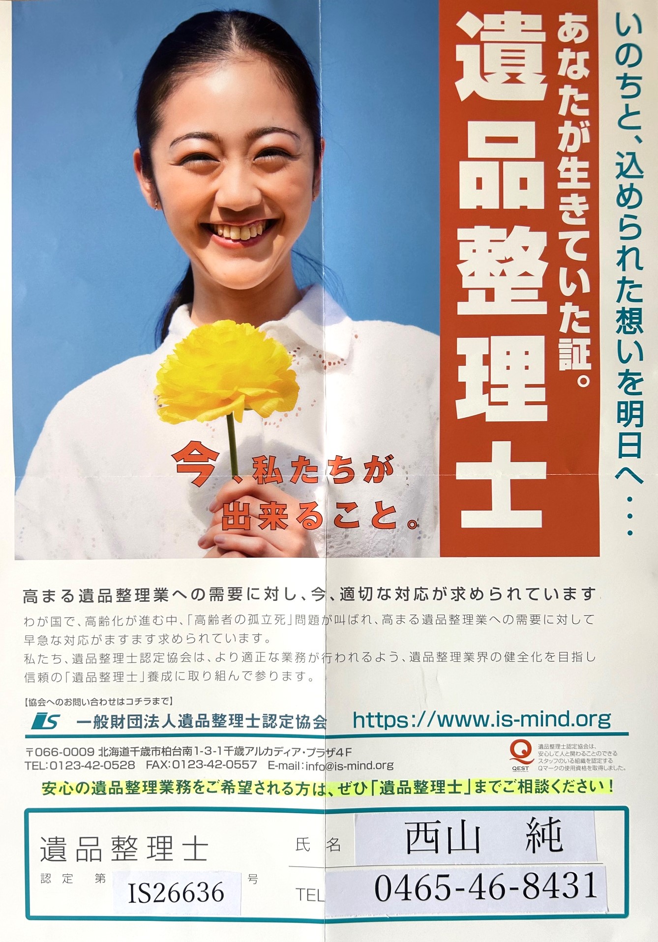 故人の思い出のつまった遺品をひとつひとつ整理します。私たちの専門は在宅での介護ですから、整理する中で、今後、介護で使えそう、または利用できるものなどはアドバイスさせていただきます。